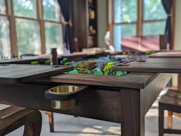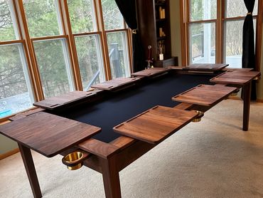 Removable 4 leaf top. Magnetic rails for cup holders and Player Tables (Accessories Sold Separately.) Recessed - Vaulted Gaming area! Choose your color of play area from 20 different colors!